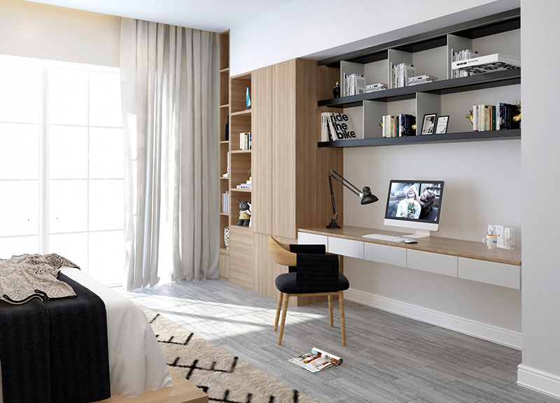 家の壁材や床材と調和のとれたインテリア、趣向を凝らしたベッドのヘッドボードなど 長年培ってきた職人の技術をふんだんに活かした、あたたかみのある機能的な家具・建具は年月が経っても飽きのこない味わい深いものになるはず。